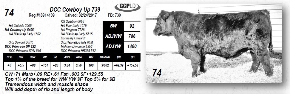 Top 1% of the breed for WW YW $F Top 5% for $B