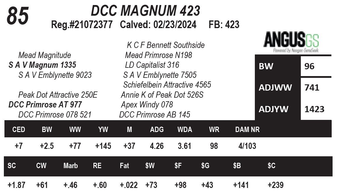 Top 3% Milk, Top 5%SC,Top 15%YW, Top 25%WW,CEM,$W, Top 35%CW