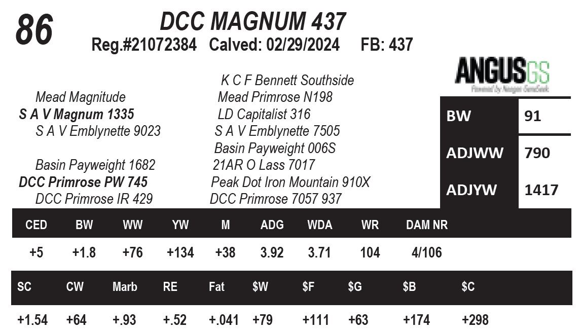 Top 2% Milk, Top 15%SC,CEM,$W,Top 20%$F,$C, Top 25%WW,$B,YW,Top 30% CW,Marb