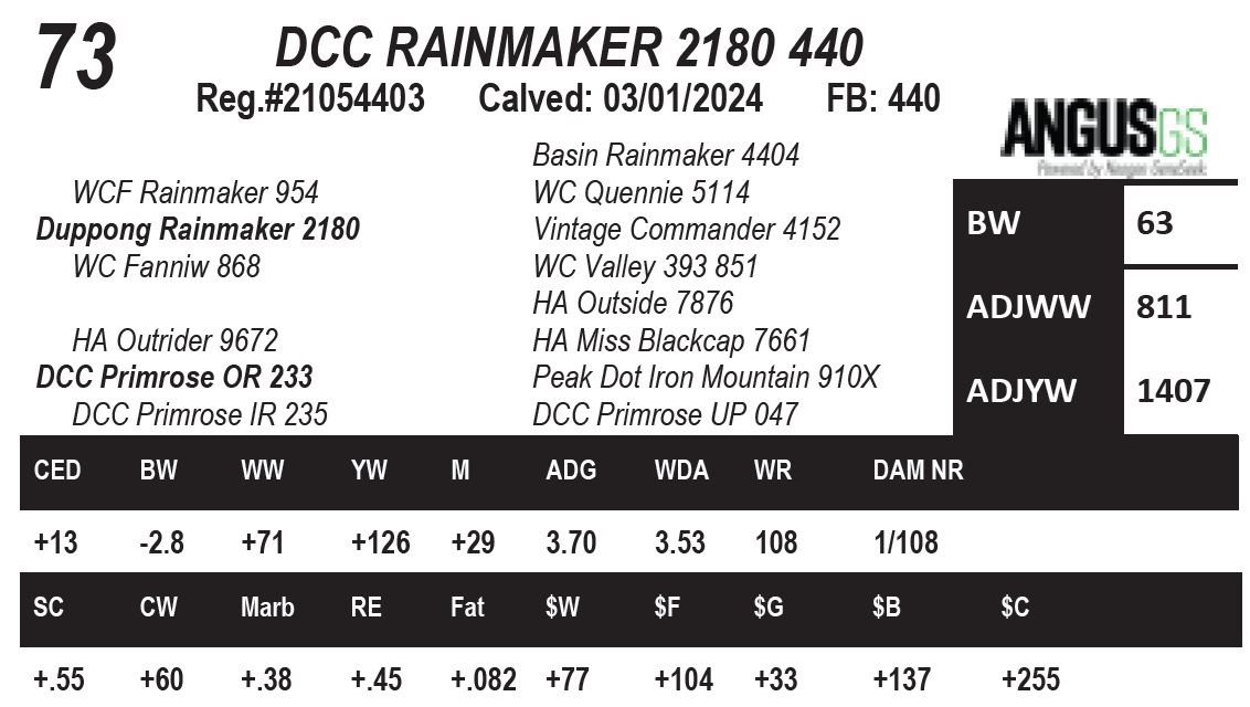 35%CW, Top 40% WW,YW. Recommended for heifers.
