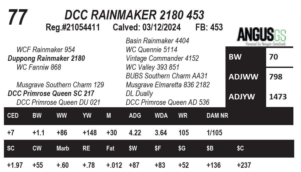 Top 3% $W,Top 10% WW,YW, Top 25% Milk. Recommended for heifers