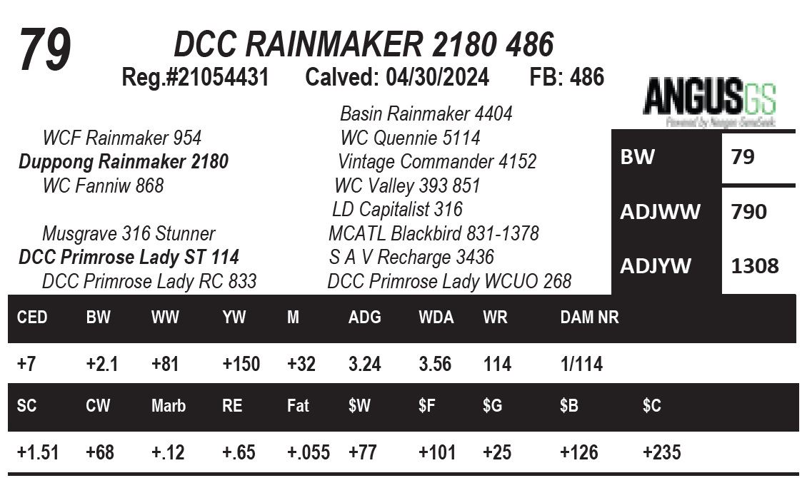 Top 10% YW, Top 15% Milk,$W,SC,Top 20% CW, Top 30% $M,Top 35%$F Recommended for heifers