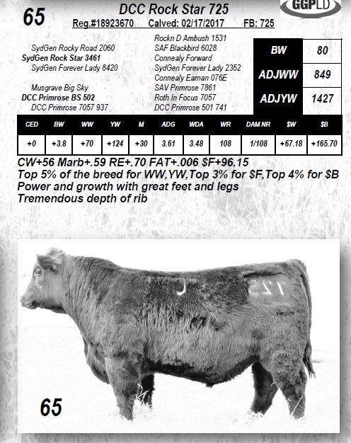 Top 5% of the breed for WW,YW,Top 3% for $F,Top 4% for $B