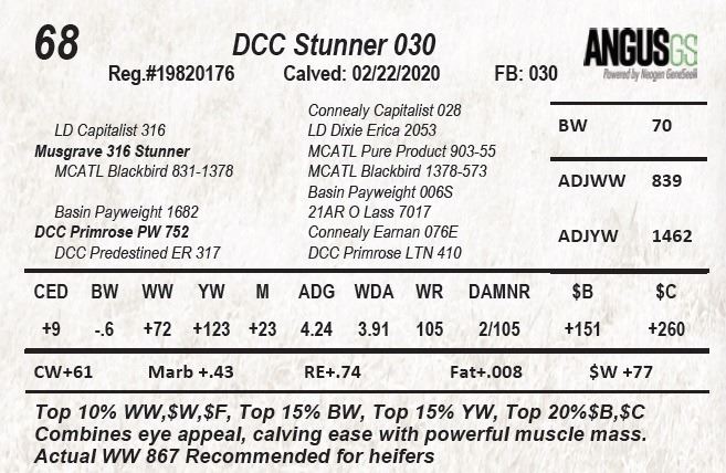 Combines eye appeal, calving ease with powerful muscle mass.