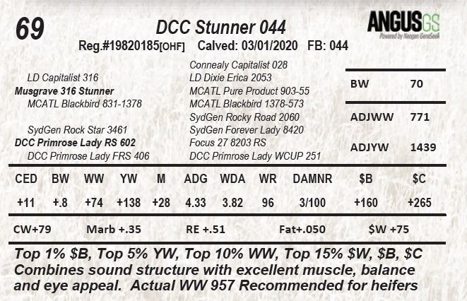 and eye appeal. Actual WW 957 Recommended for heifers