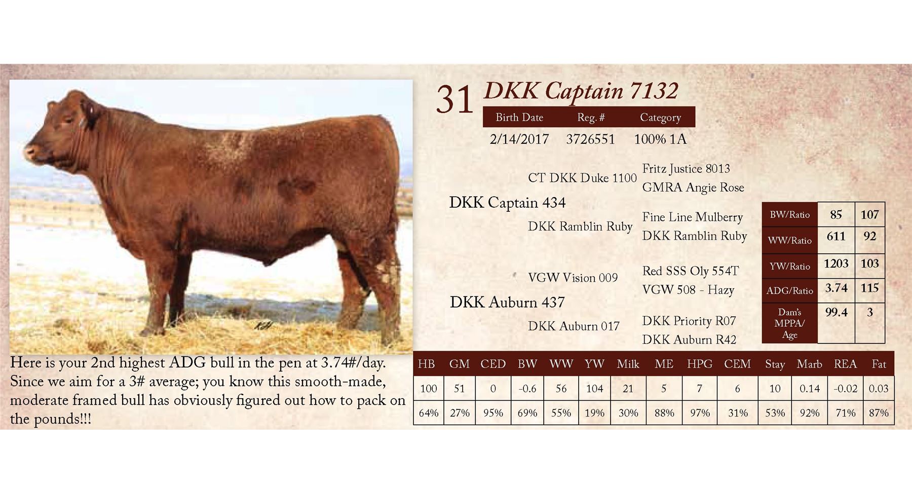 Here is your 2nd highest ADG bull in the pen at 3.74#/day.