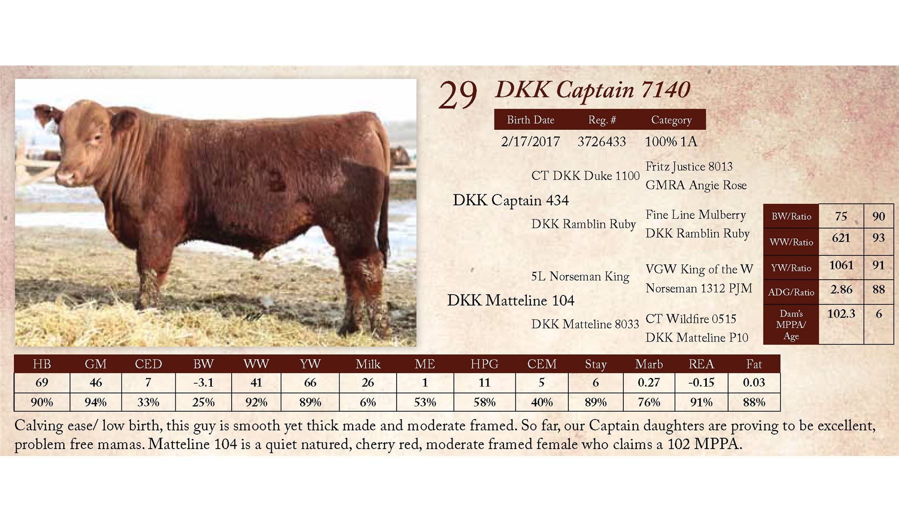 problem free mamas. Matteline 104 is a quiet natured, cherry red, moderate framed female who claims a 102 MPPA.