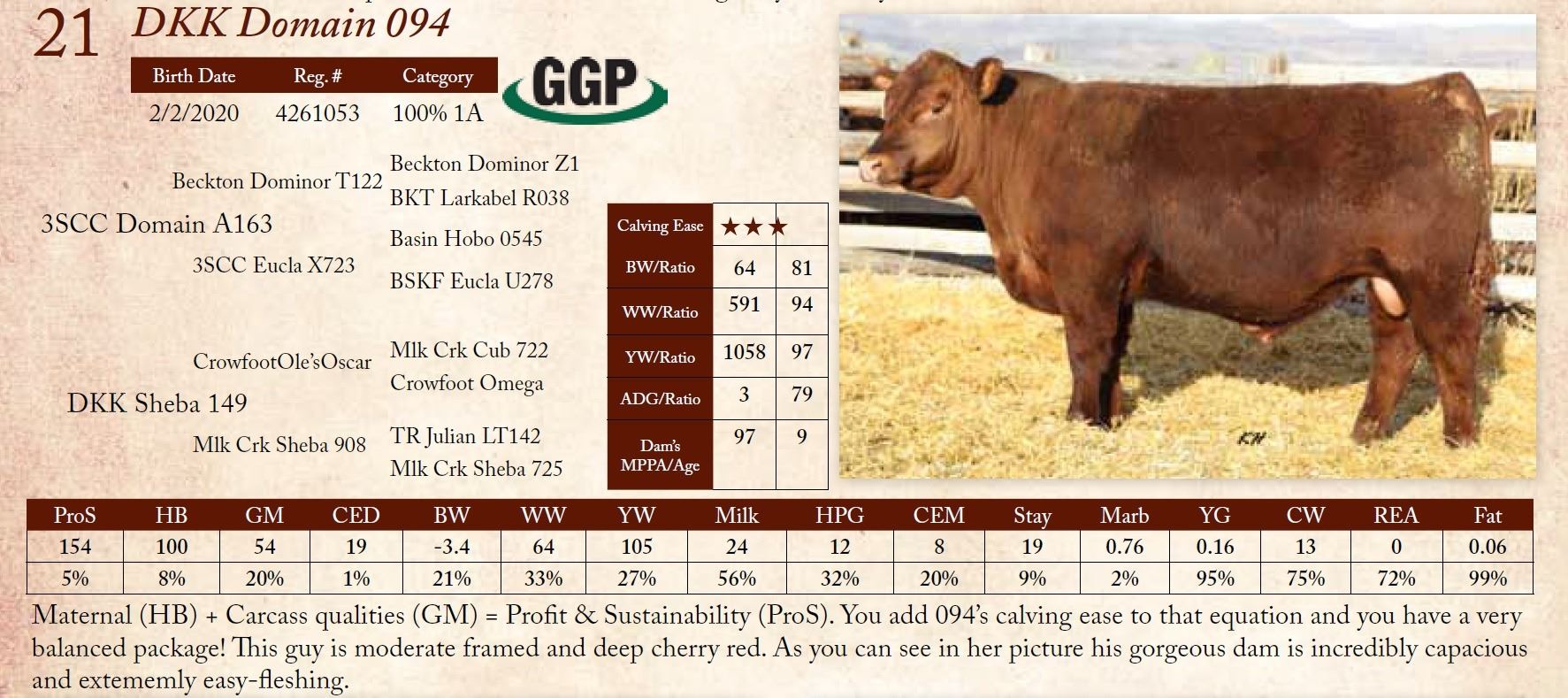 Maternal (HB) + Carcass qualities (GM) = Profit & Sustainability (ProS). You add 094’s calving ease to that equation and you have a very