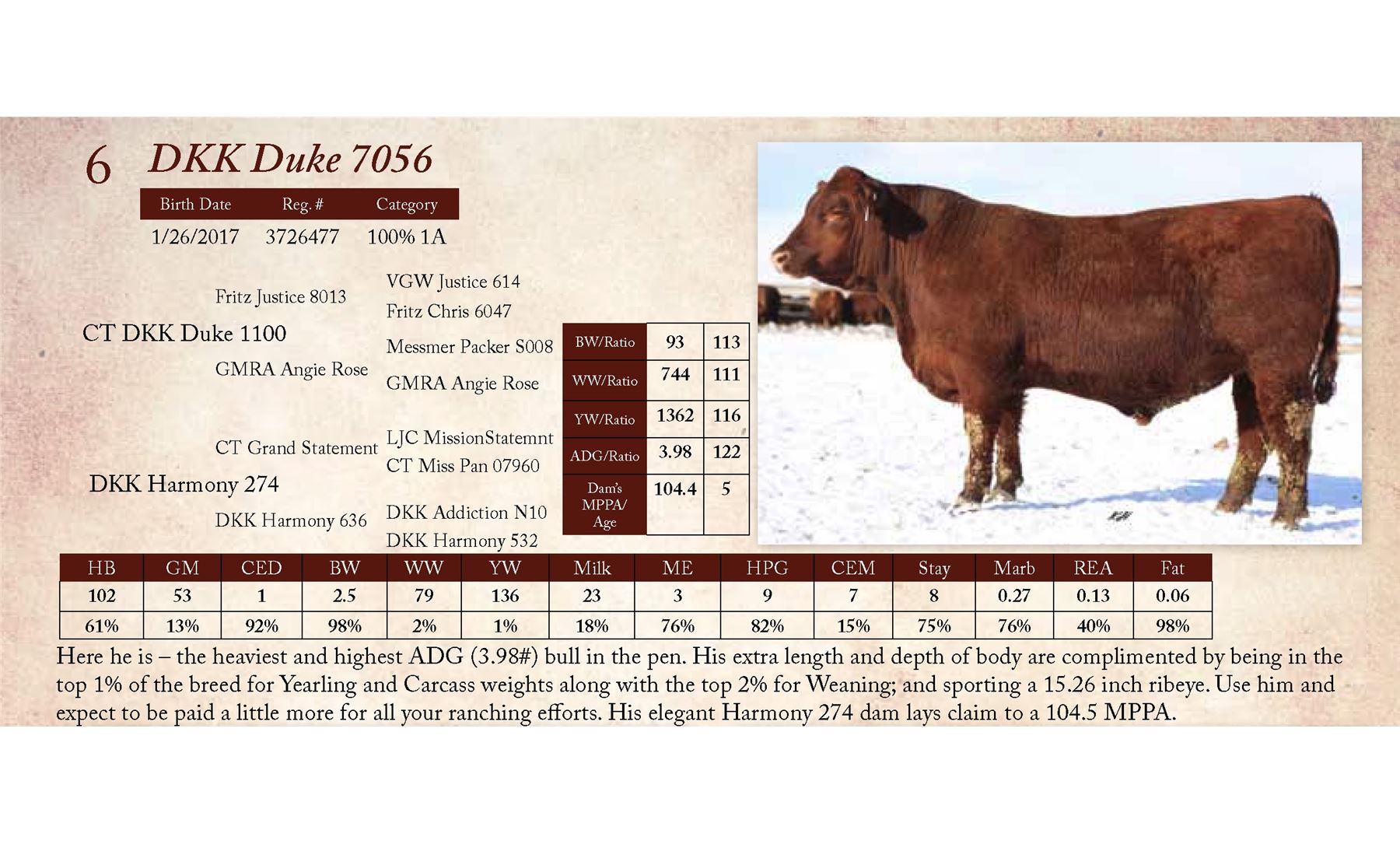expect to be paid a little more for all your ranching efforts. His elegant Harmony 274 dam lays claim to a 104.5 MPPA.