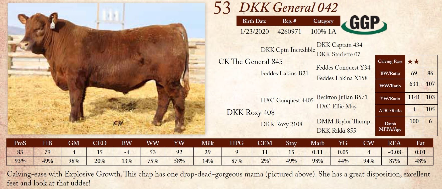 Calving-ease with Explosive Growth. This chap has one drop-dead-gorgeous mama (pictured above). She has a great disposition, excellent