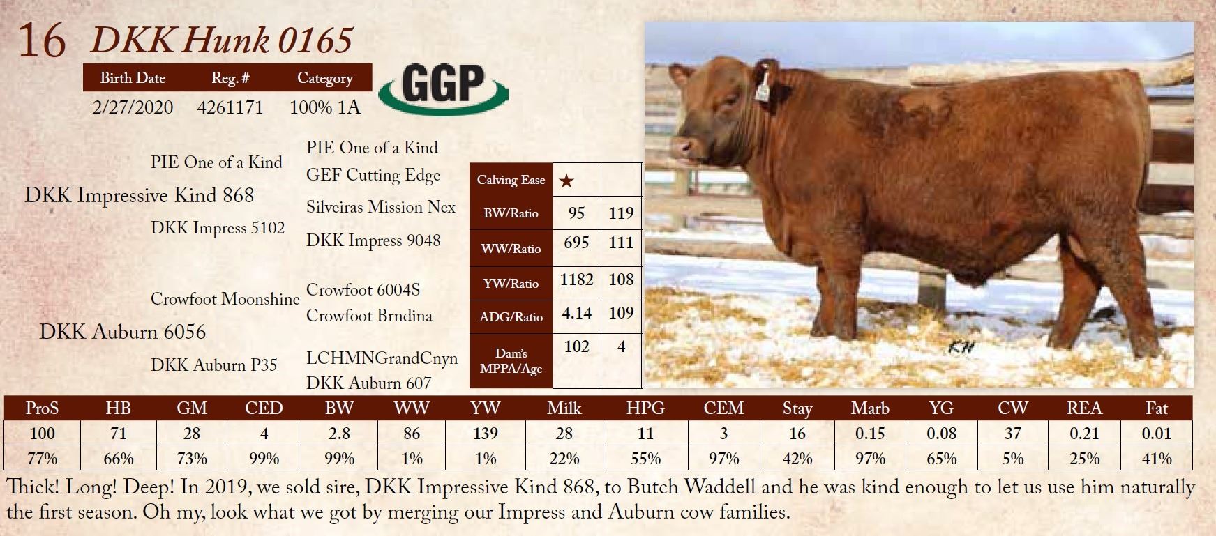 Thick! Long! Deep! In 2019, we sold sire, DKK Impressive Kind 868, to Butch Waddell and he was kind enough to let us use him naturally