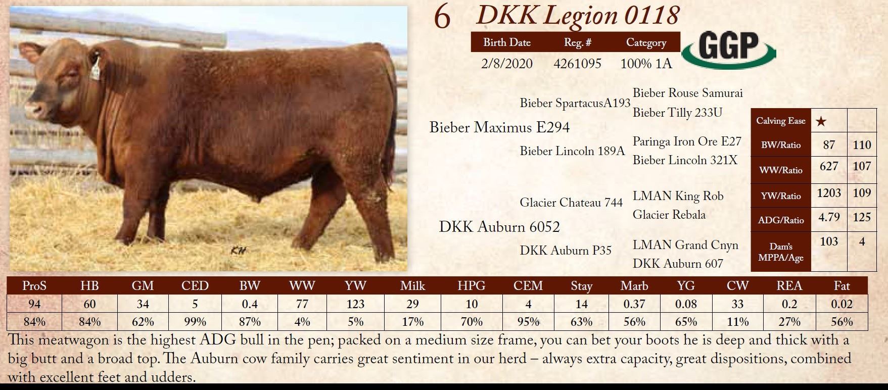 This meatwagon is the highest ADG bull in the pen; packed on a medium size frame, you can bet your boots he is deep and thick with a