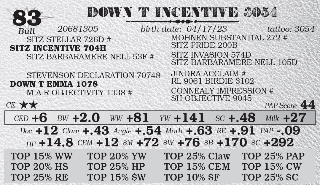 We will continue to offer a pickup credit of $100 per head for all bulls picked up within 7 days of