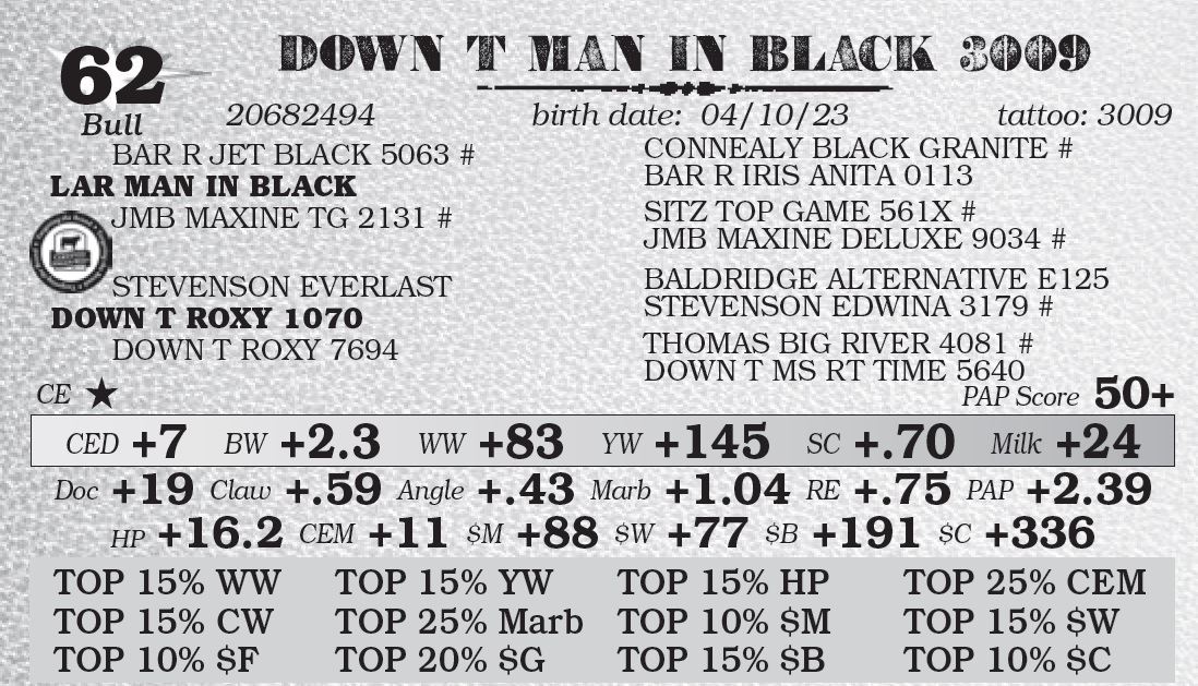 We will continue to offer a pickup credit of $100 per head for all bulls picked up within 7 days of