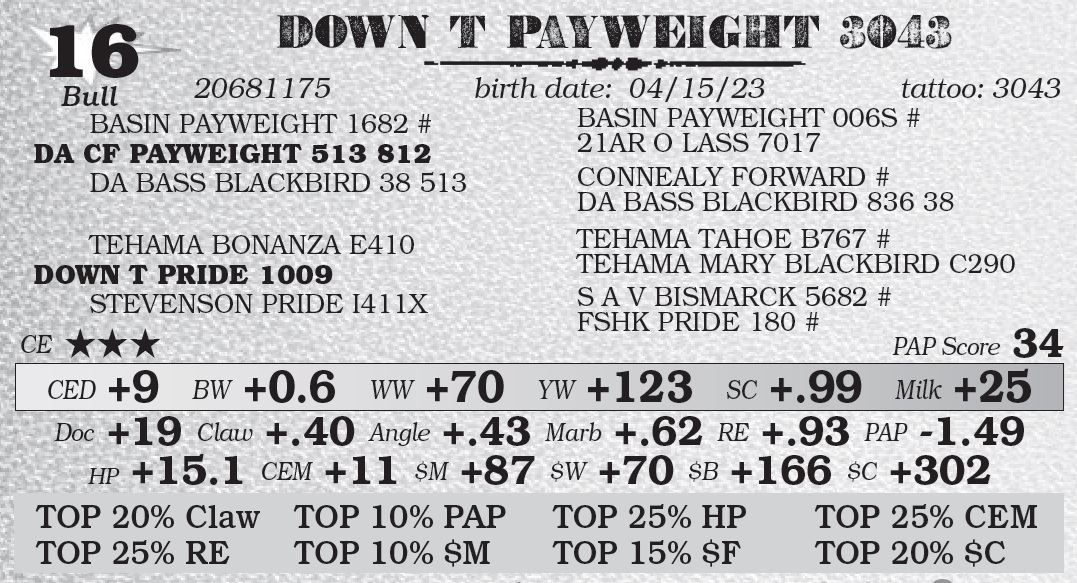 We will continue to offer a pickup credit of $100 per head for all bulls picked up within 7 days of