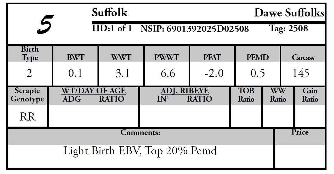 Consignor: Dawe Suffolks