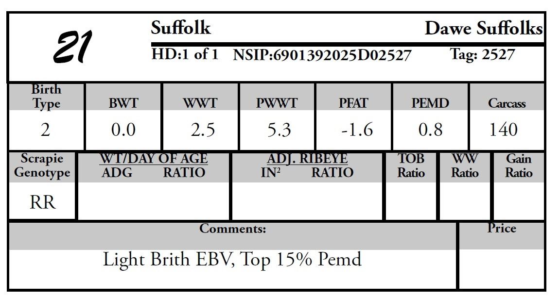 Consignor: Dawe Suffolks
