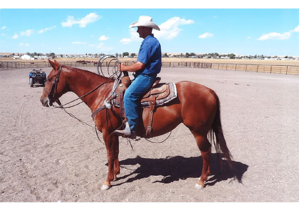 Rey is a nice, 7 year old, well broke mare. She was raised on this ranch and was ridden a lot on the ranch and has been shown for three years in reined cow horse events and had a lot of success. She is a big stopper, is loaded with cow, and handles nice. Justin Warneke has been heading and heeling on her and she is ready to haul. She is a gentle mare, good for kids, wives, and husbands. Ranch, rope, or show this mare, she is ready to go get the job done. 15.1 hands 1200 lbs. Call Justin for more inf 406-214-5609