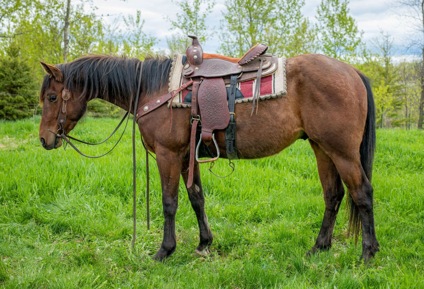 Dunnit had been started as a 2 year old and is now continuing to improve. He shows lots of potential as a ranch or performance horse. He tucks his head, gives to leg pressure and backs. He handles super soft, stands will to brush, saddle, etc. He has had outside and inside time. Dunnit has been exposed to ranch life and been around cattle. He is very willing to learn. We are excited to have the opportunity to have started him and to offer him at the sale. Dunnit Bay is sired by Miles of Dun It, a grandson of the one and only Hollywood Dun It, the great reining horse sire. If you are looking for an thletic, young partner to gro with, check out this hh gelding. For more information, call 218-487-6122.