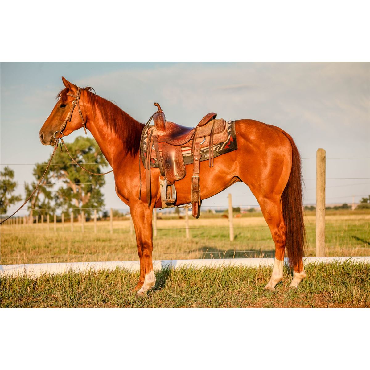 This is a really nice colt that has a pedigree bred to run. Will be lightly patterned on the barrels by sale time. His colt has been rode ouside gathering cattle and around the ranch. Take him to the arena or the ranch, should make a super nice horse.