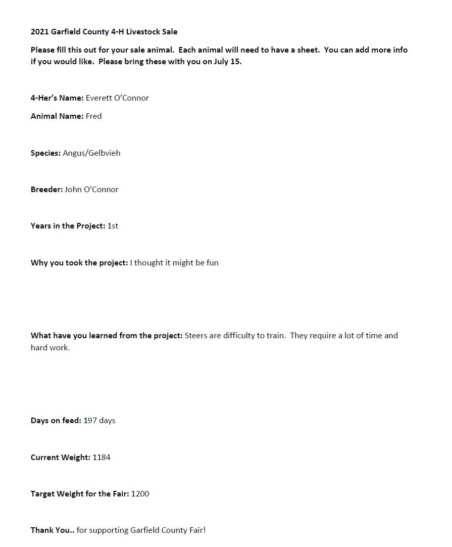 ANIMALS WILL BE SOLD $ PER POUND, BID PRICE MULTIPLIED BY WEIGHT!