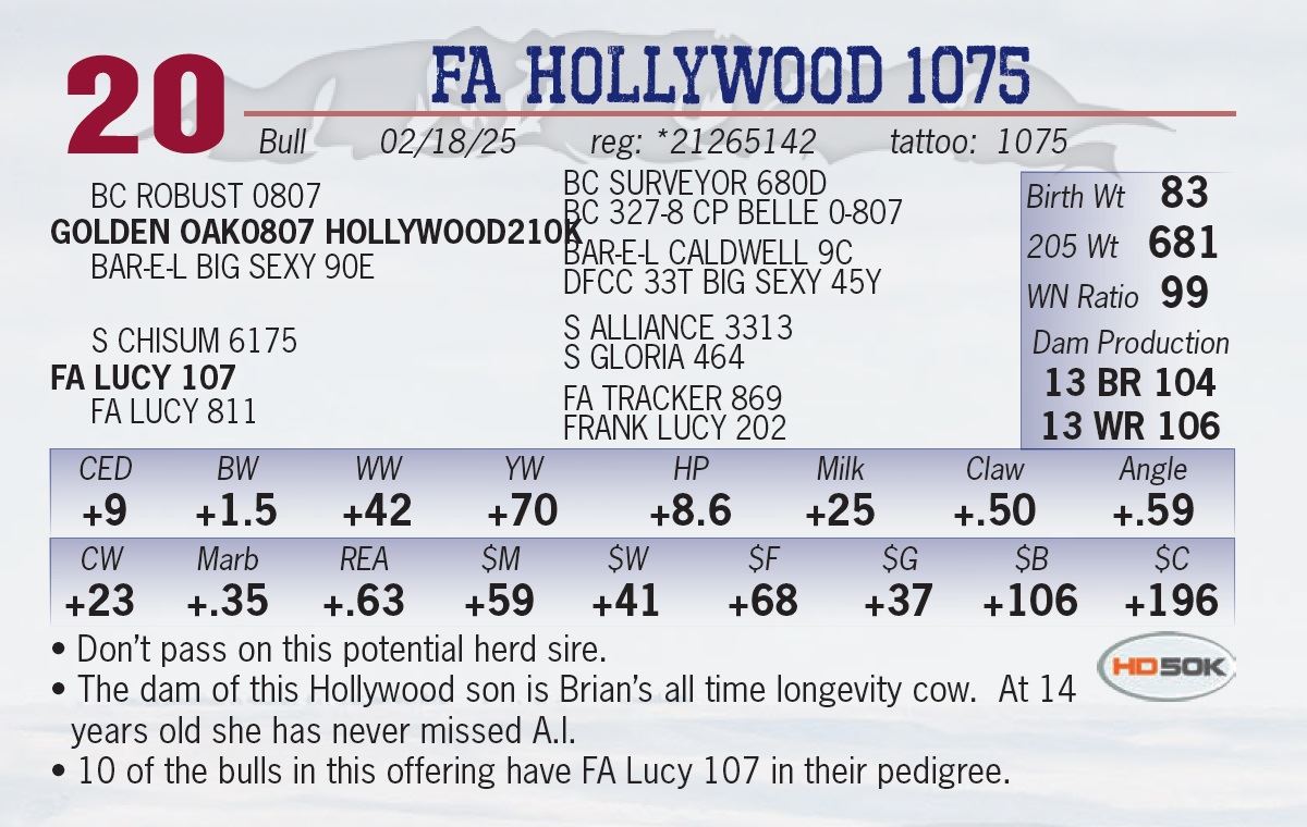 • 10 of the bulls in this offering have FA Lucy 107 in their pedigree.