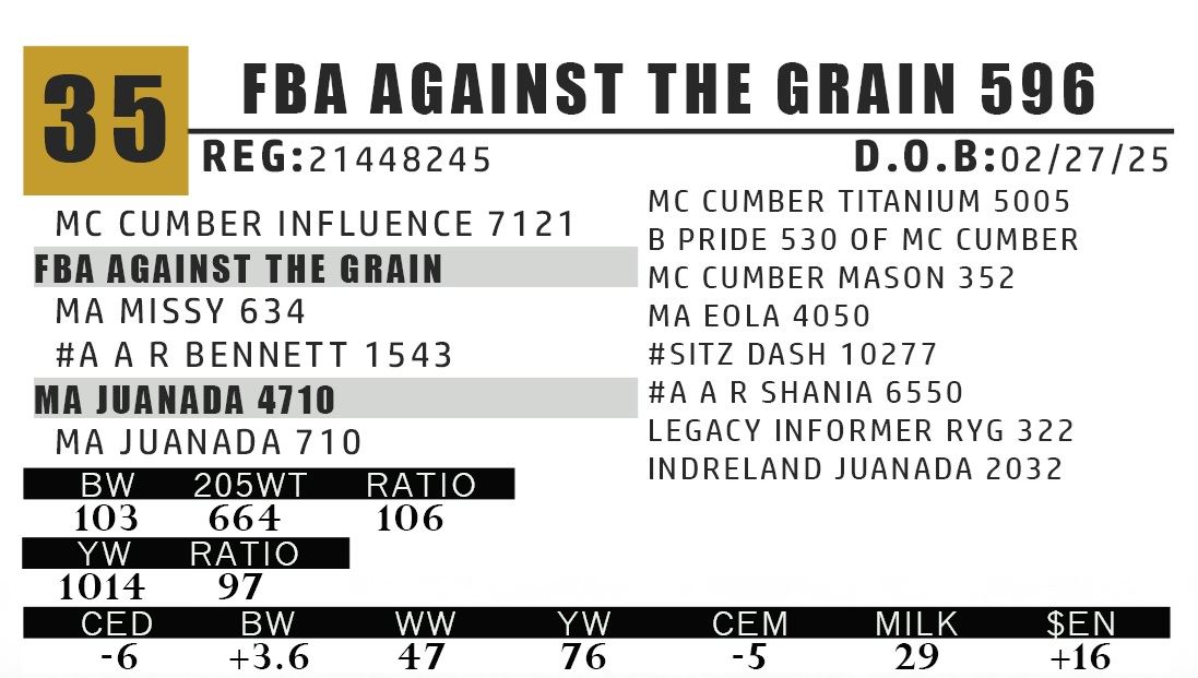 12 YEAR OLD DAM’S FINAL CALF THAT WEANED OFF WELL ABOVE