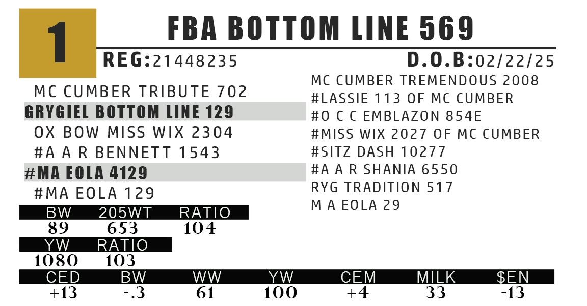 THIS LOT 1 BULL HAS THE PHENOTYPE AND PEDIGREE A