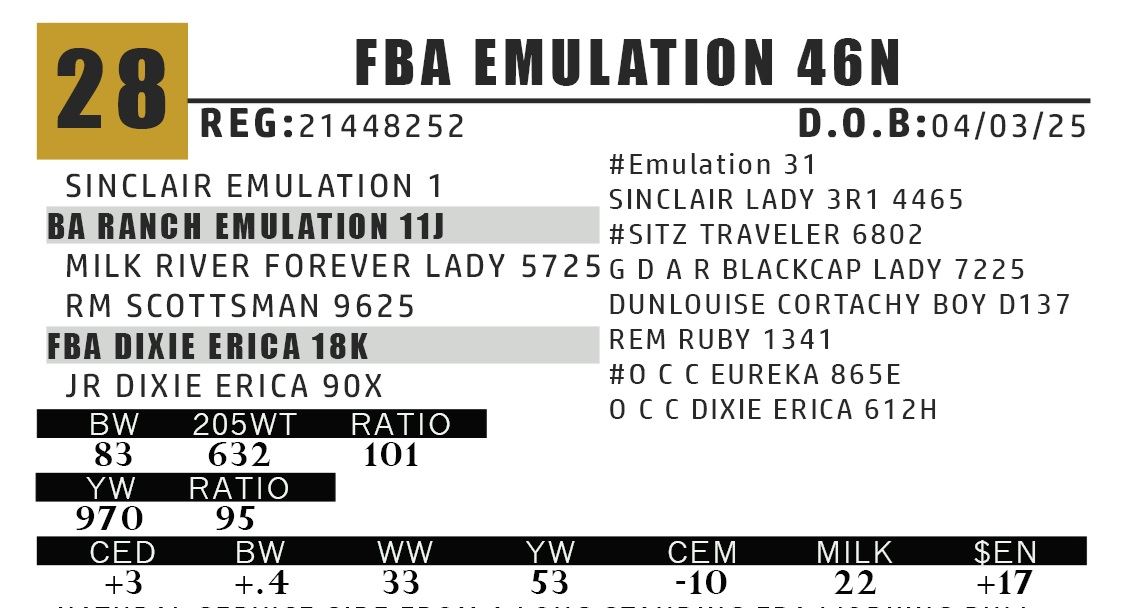NATURAL SERVICE SIRE FROM A LONG STANDING FBA WORKING BULL