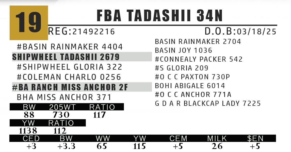 -THE DAM TO LOT 19 AVERAGES A WEANING RATIO OF 110 ON 6