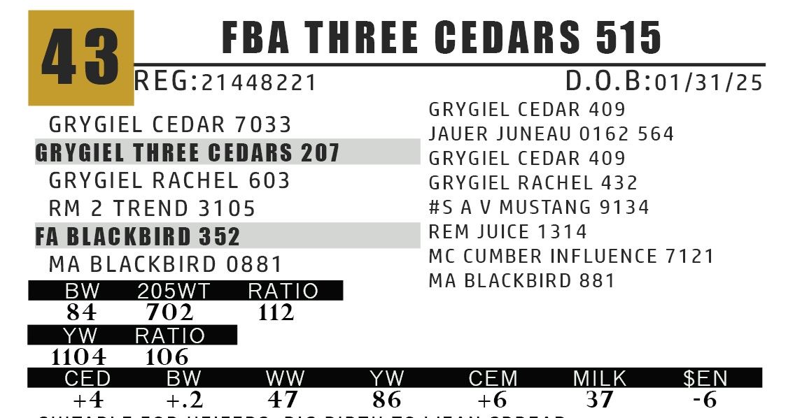 SUITABLE FOR HEIFERS. BIG BIRTH TO WEAN SPREAD.