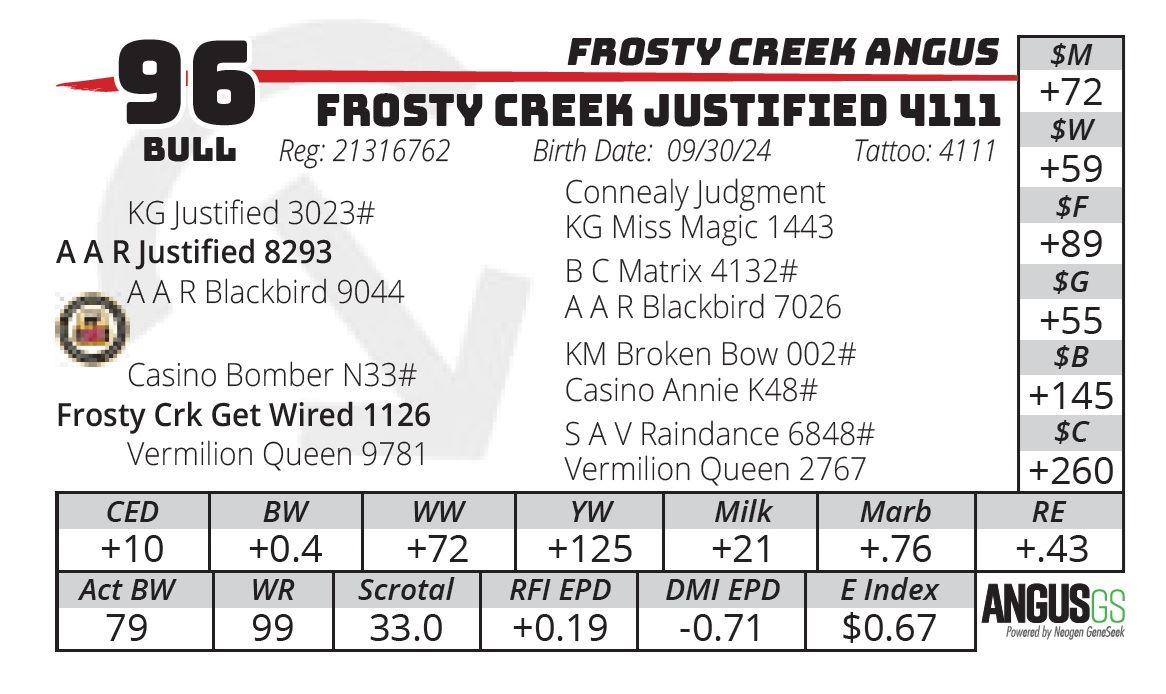 FROSTY CREEK JUSTIFIED 4111