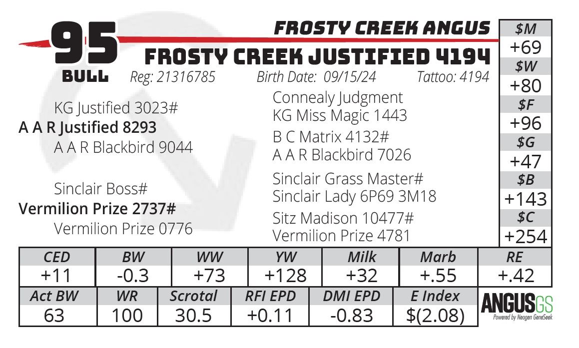 FROSTY CREEK JUSTIFIED 4194