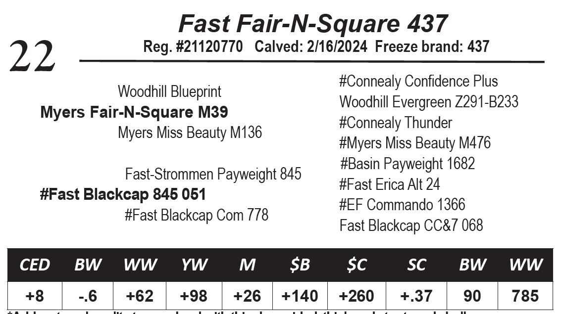 Add maternal quality to your herd with this deep sided, thick and stout-made bull. *His dam has super udder quality and is a Pathfinder cow. His grand dam, also a Pathfinder cow, is the mother of Lot 48. His Carcass EPDs: Marb: +.67, RE: +.69. His WR: 104. Dam’s WR: 3/107.
