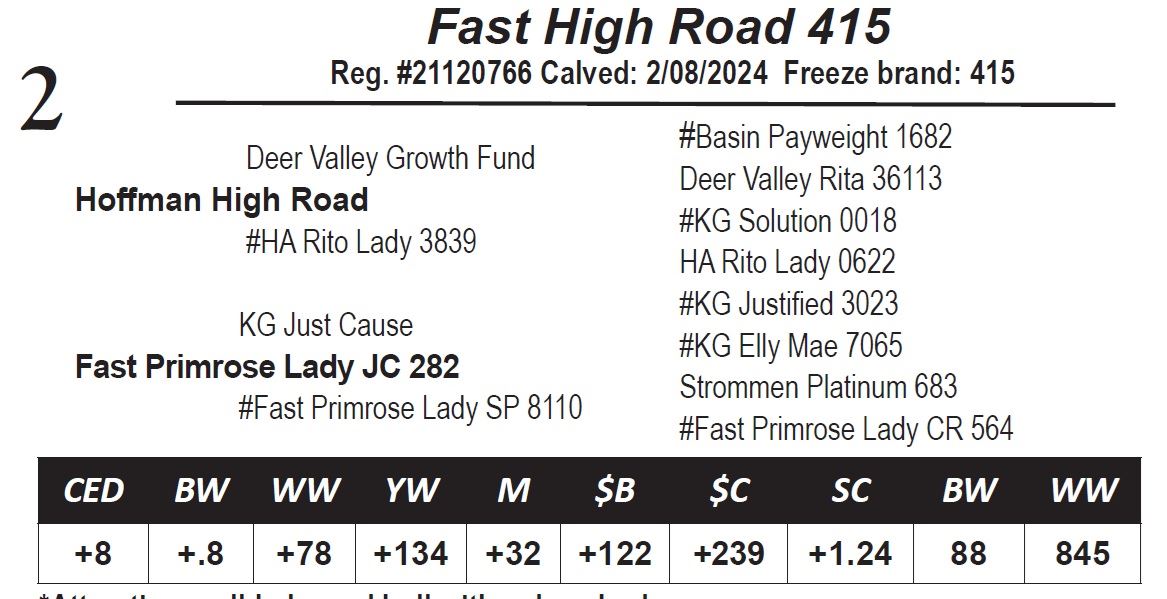 Attractive, well-balanced bull with a deep body. *Combines weaning performance and superior maternal traits. *Dam is a first-calf heifer. Grand dam and great grand dam are Pathfinder cows with good feet and legs and quality shaped udders.*His WR: 112, Dam’s WR: 1/112.