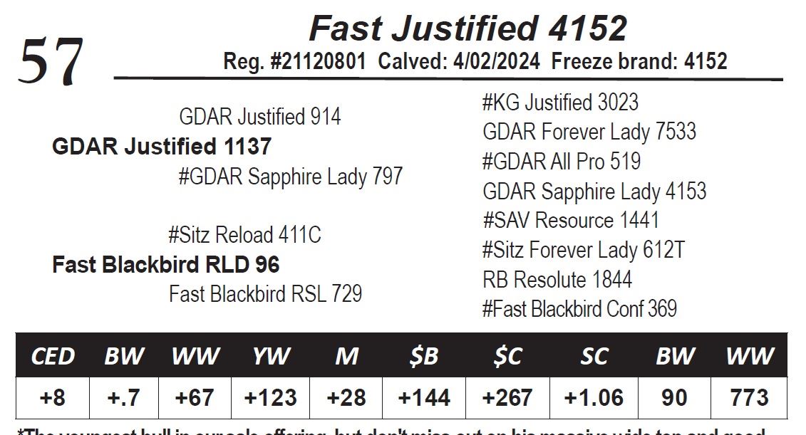 The youngest bull in our sale offering, but don't miss out on his massive wide top and good depth of rib. *His dam is a heavy milking Reload daughter.*His Carcass EPDs: Marb: +.39, RE: +.72. His WR: 102, Dam’s WR: 4/103.