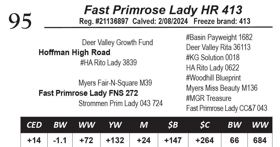 Starting with a heifer whose calving ease EPDs ranks her in the top 4% CED and top 10% for BW. She is deep sided, square made and structually correct on her feet and legs. *Her dam is a good milking, first-calf Fair-N-Square daughter.*Her WR: 97, Dam’s WR: 1/97.