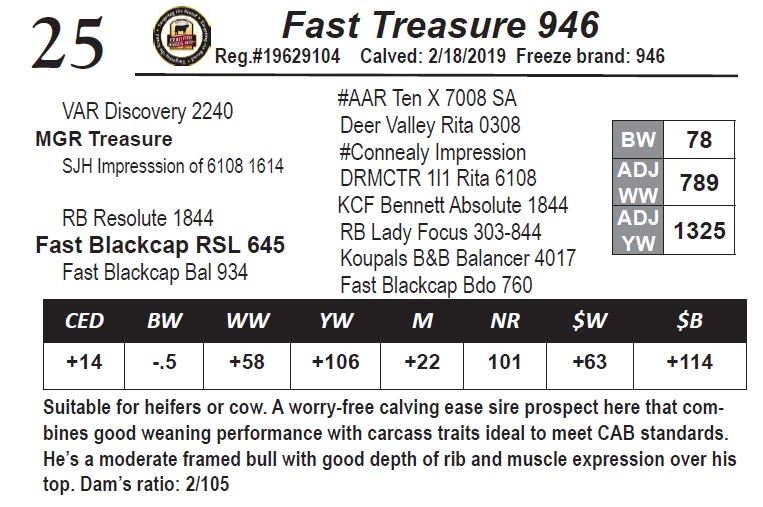 Suitable for heifers or cow. A worry-free calving ease sire prospect here that combines good weaning performance with carcass traits ideal to meet CAB standards. He’s a moderate framed bull with good depth of rib and muscle expression over his top. Dam’s ratio: 2/105