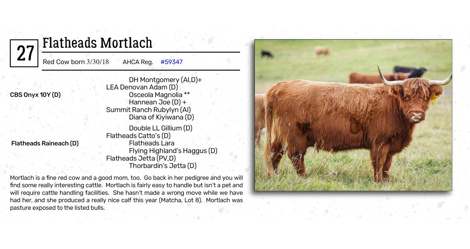 had her, and she produced a really nice calf this year (Matcha, Lot 8). Mortlach was