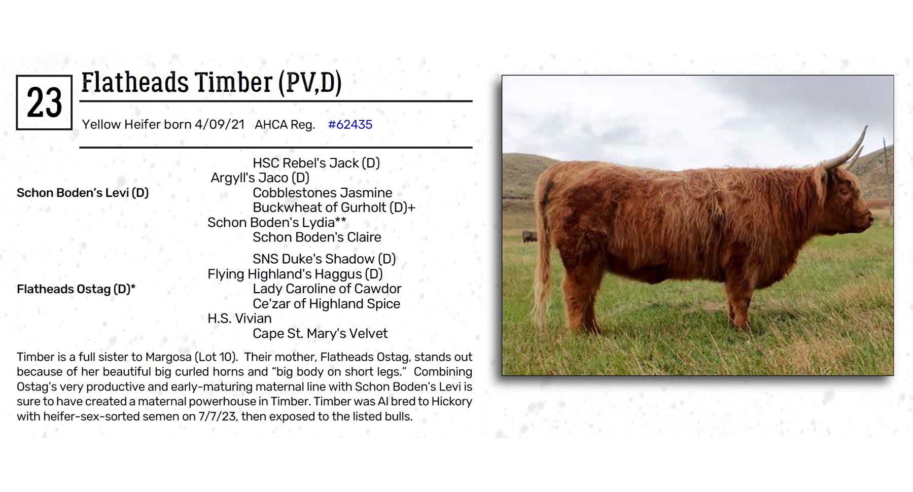 sure to have created a maternal powerhouse in Timber. Timber was AI bred to Hickory