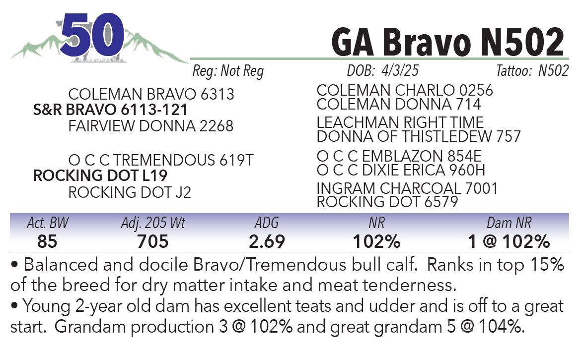 • Balanced and docile Bravo/Tremendous bull calf. Ranks in top 15%