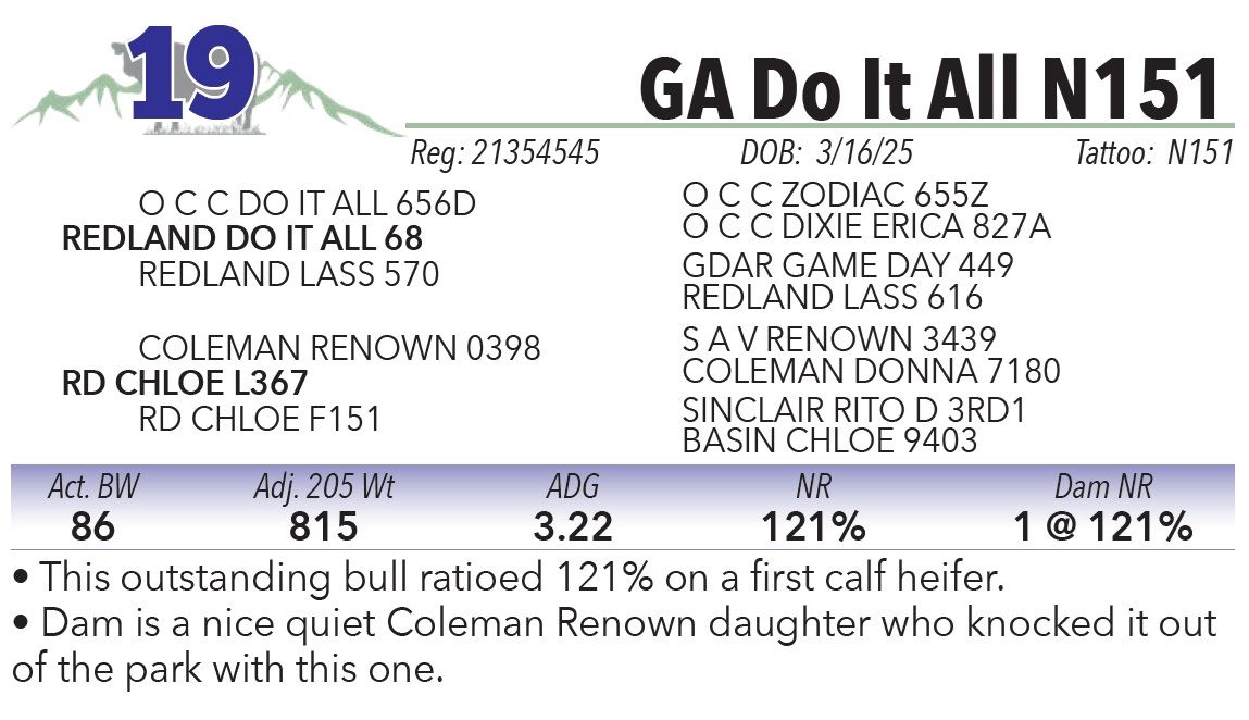 • This outstanding bull ratioed 121% on a first calf heifer.