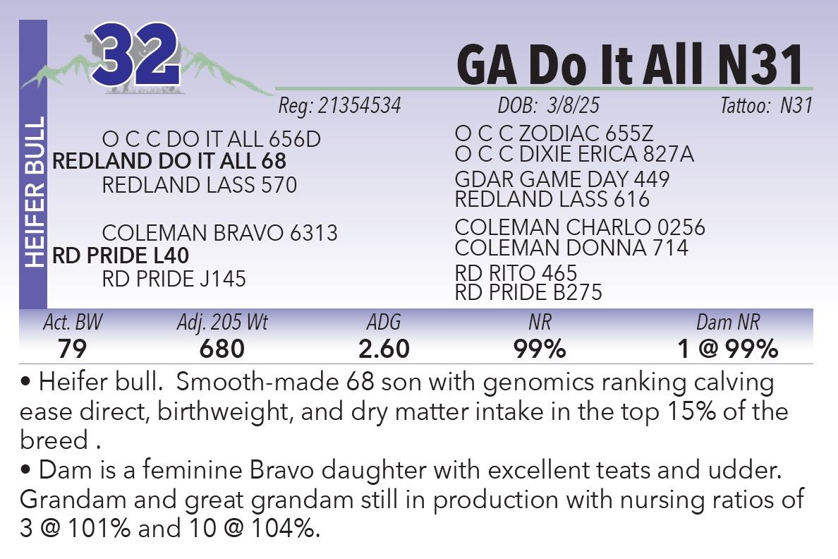 • Heifer bull. Smooth-made 68 son with genomics ranking calving
