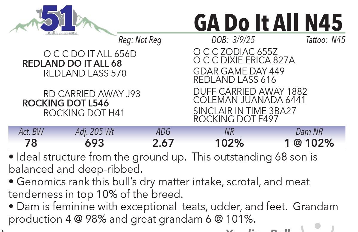 • Genomics rank this bull’s dry matter intake, scrotal, and meat