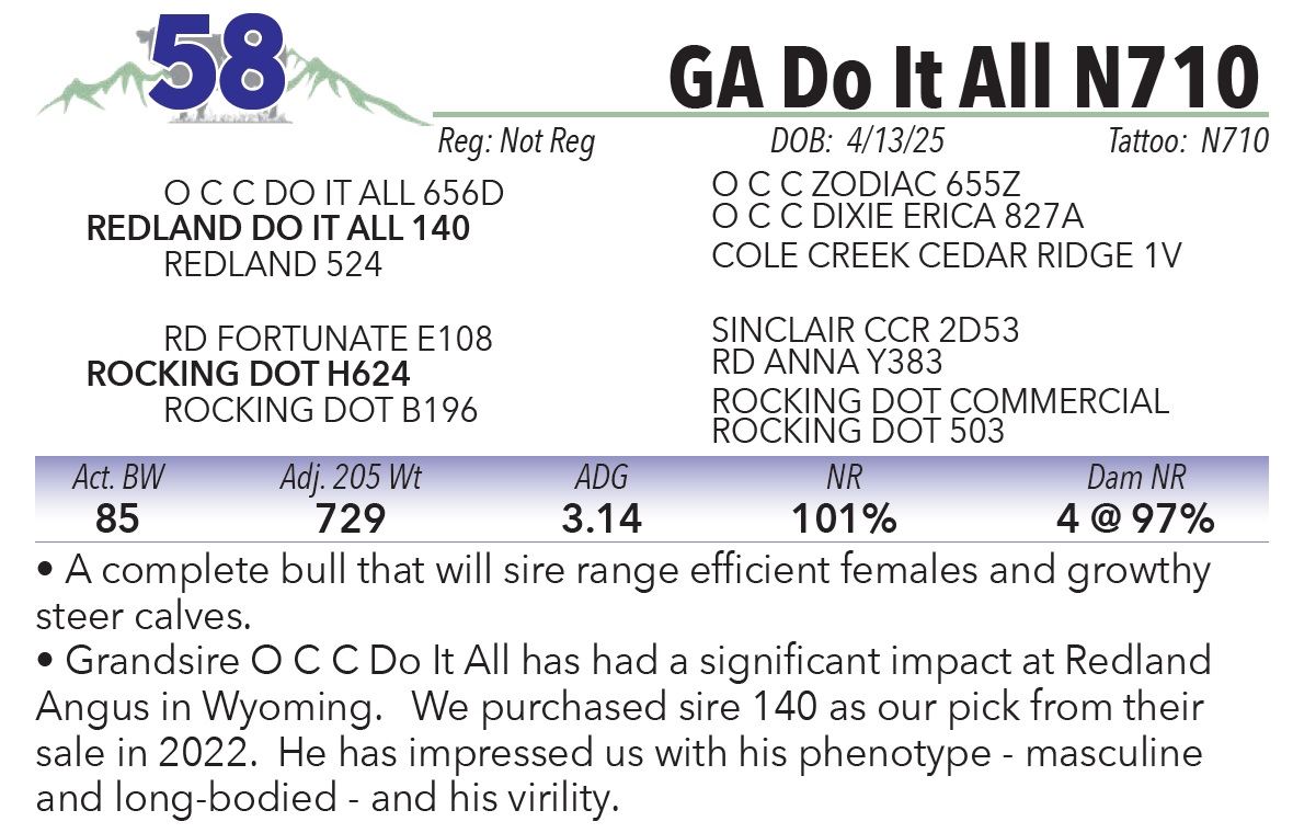Angus in Wyoming. We purchased sire 140 as our pick from their