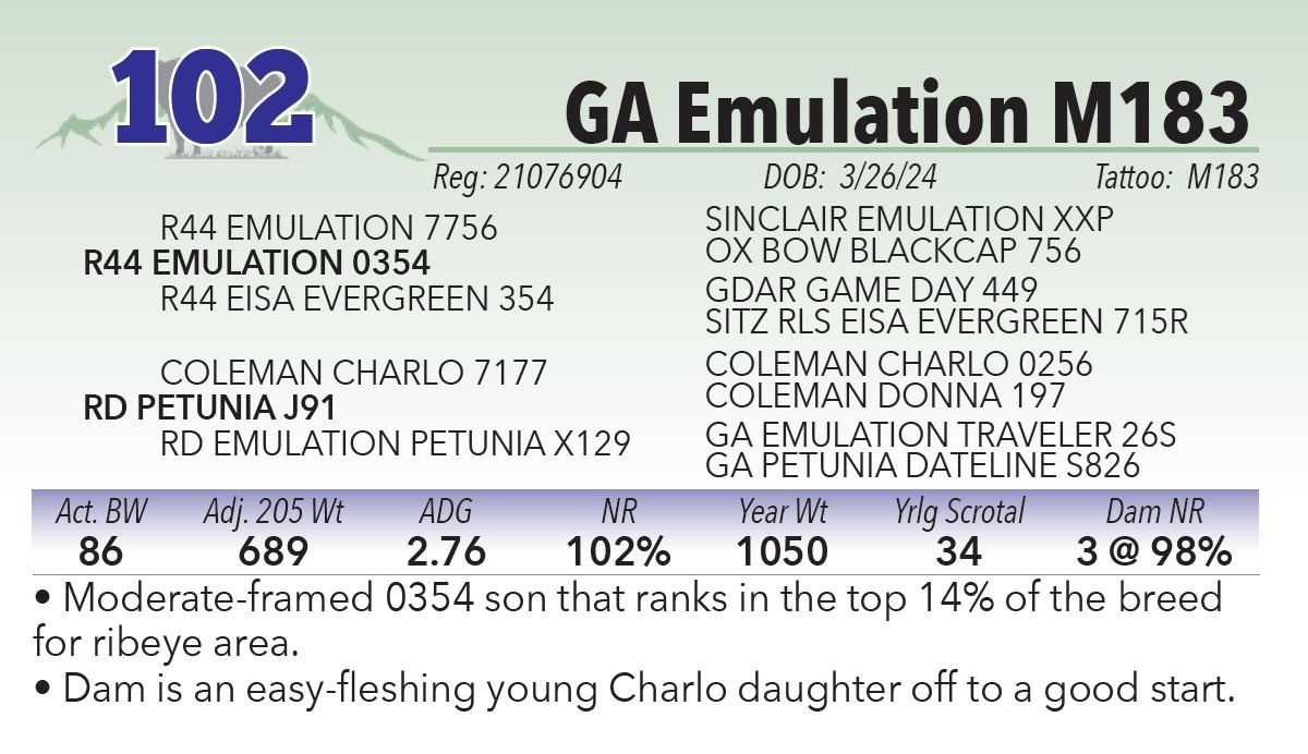 • Moderate-framed 0354 son that ranks in the top 14% of the breed
