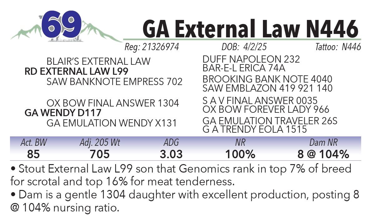 • Stout External Law L99 son that Genomics rank in top 7% of breed