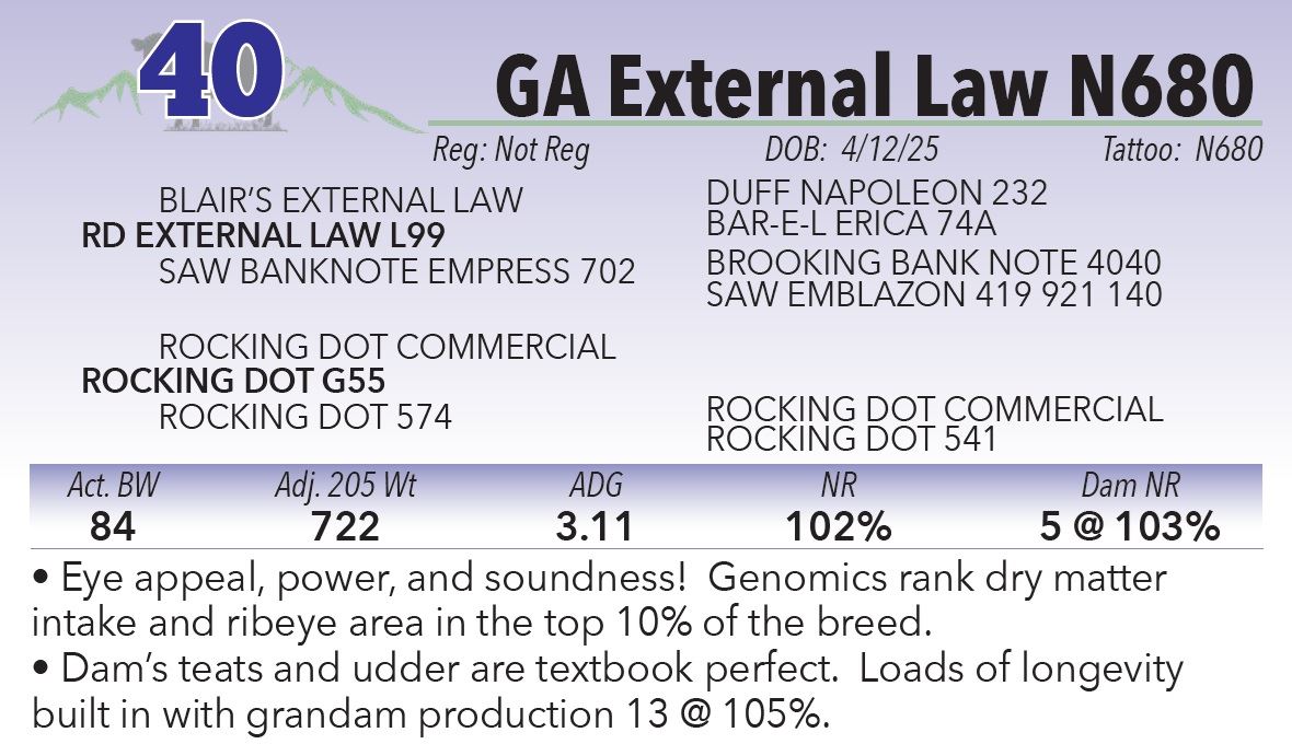 • Dam’s teats and udder are textbook perfect. Loads of longevity