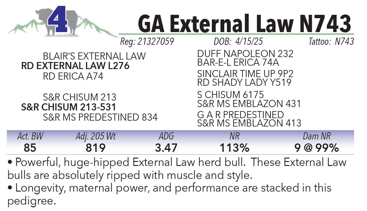 • Powerful, huge-hipped External Law herd bull. These External Law
