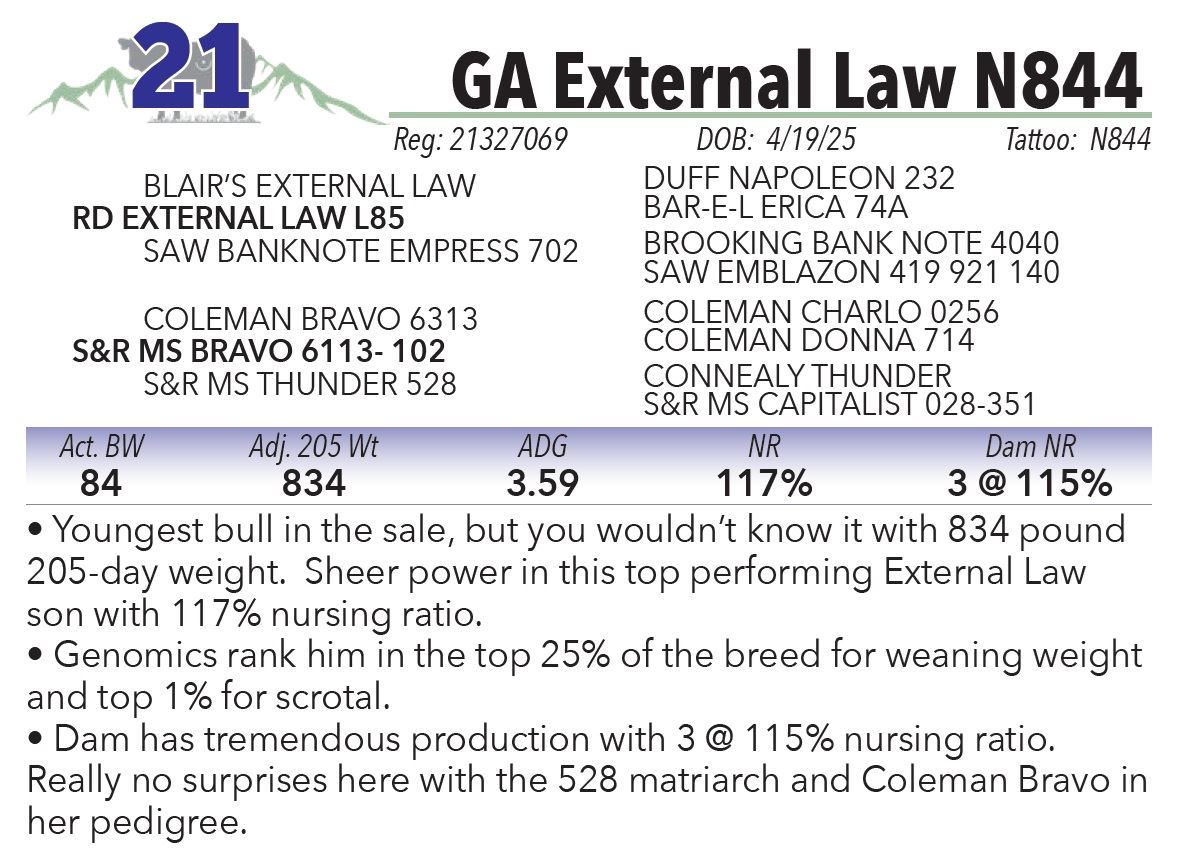 • Youngest bull in the sale, but you wouldn’t know it with 834 pound